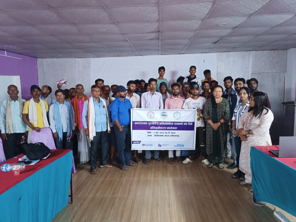 On 16th May ,2025 at Tilaurakot Hotel ,Taulihawa Kapilvastu Municipality.Under the expected outcome  of the Hamro Sahas project, titled “Engagement of Local Government and Citizens to Prevent Gender-based Violence through Social Norms Change”, a one-day orientation  conducted for men and boys on positive masculinity, including aspects of parenthood. Dalit men and boys  selected and invited from the wards 6, 7, and 8 of Kapilvastu Municipality to participate in this orientation.The orientation , attended by 38 participants 35 males and 3 females  and facilitated by  an external facilitator Mr Sanjay pasee . The orientation  focused on learning participants about gender, masculinity, femininity within a patriarchal culture, the effects of negative masculinity, and the role of men and boys towards positive masculinity and parenthood to ensure women’s rights and prevent gender-based violence through gender transformational change.